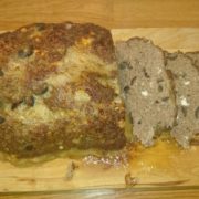 Serve meatloaf with a cream sauce, mashed cauliflower, and a sweet pickle.